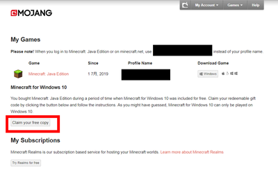 4. MojangのマイアカウントからWindows10版のコードを請求する
