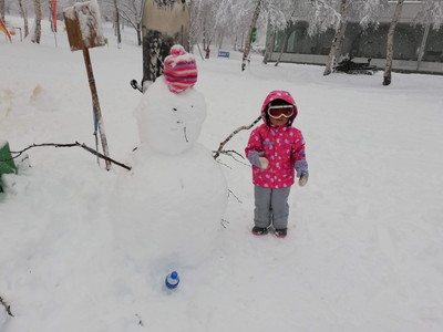 子供たちは雪だるまを作りまくってました。雪玉を転がすとすぐに大きくなる、最近はなかなかできなかった経験。