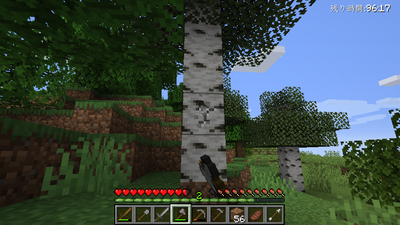 マインクラフトの基本は木や壁などを破壊して素材を入手し、入手した素材でクラフト(工作)しそれを使っていくという流れになります。操作に慣れるついでに、試しに木を破壊して木材を入手してみましょう。(マイクラで一番必要なのが木材です)