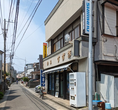到着したらとりあえず餌を買いに「すずき」という釣具屋へ。サビキ仕掛けとコマセ、イソメを購入。
