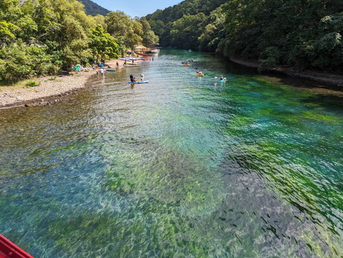 湖に流れ込む千歳川に橋がありますが、上から見ると透明度がすごく高くてきれいでした。